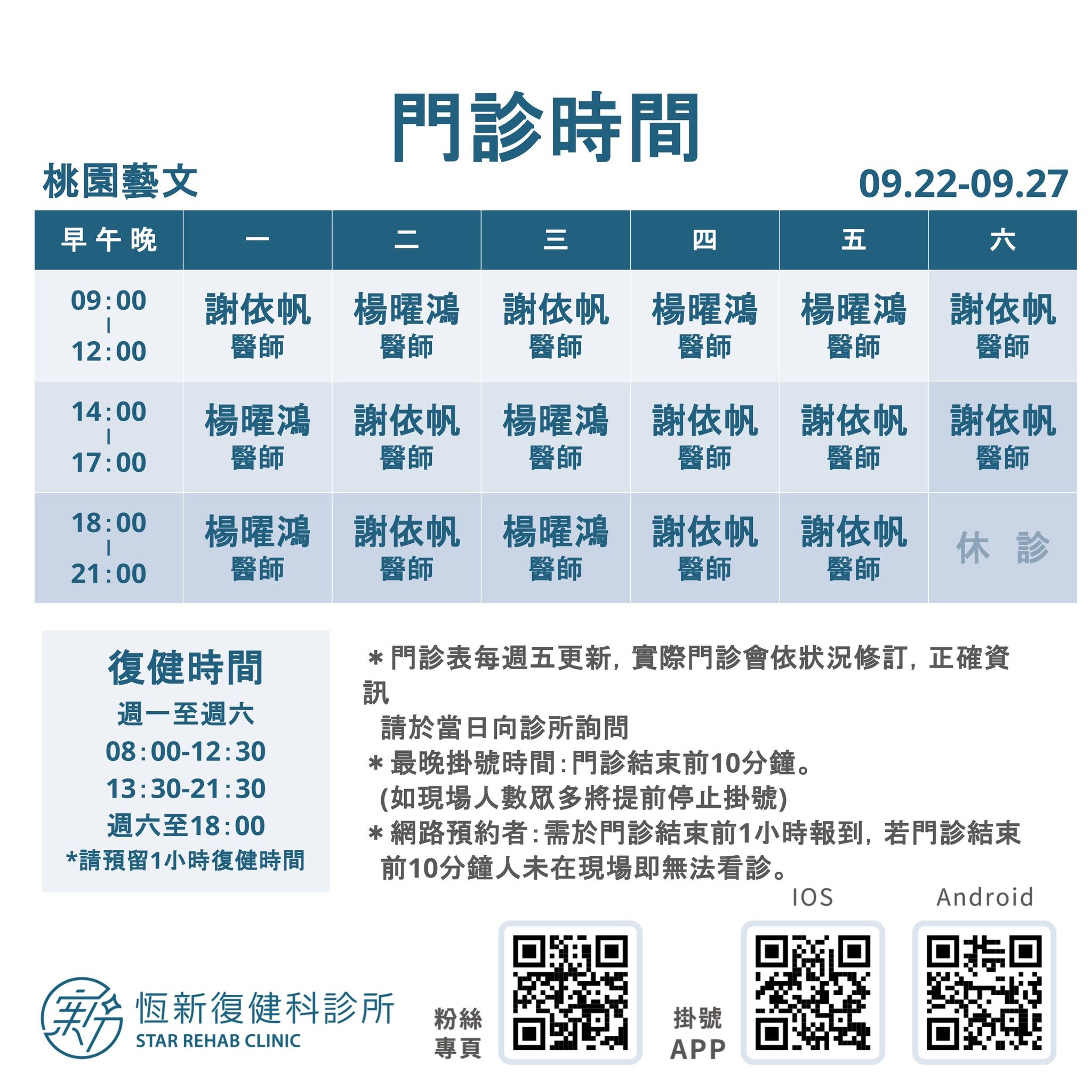 09/22-09/27 門診時間
