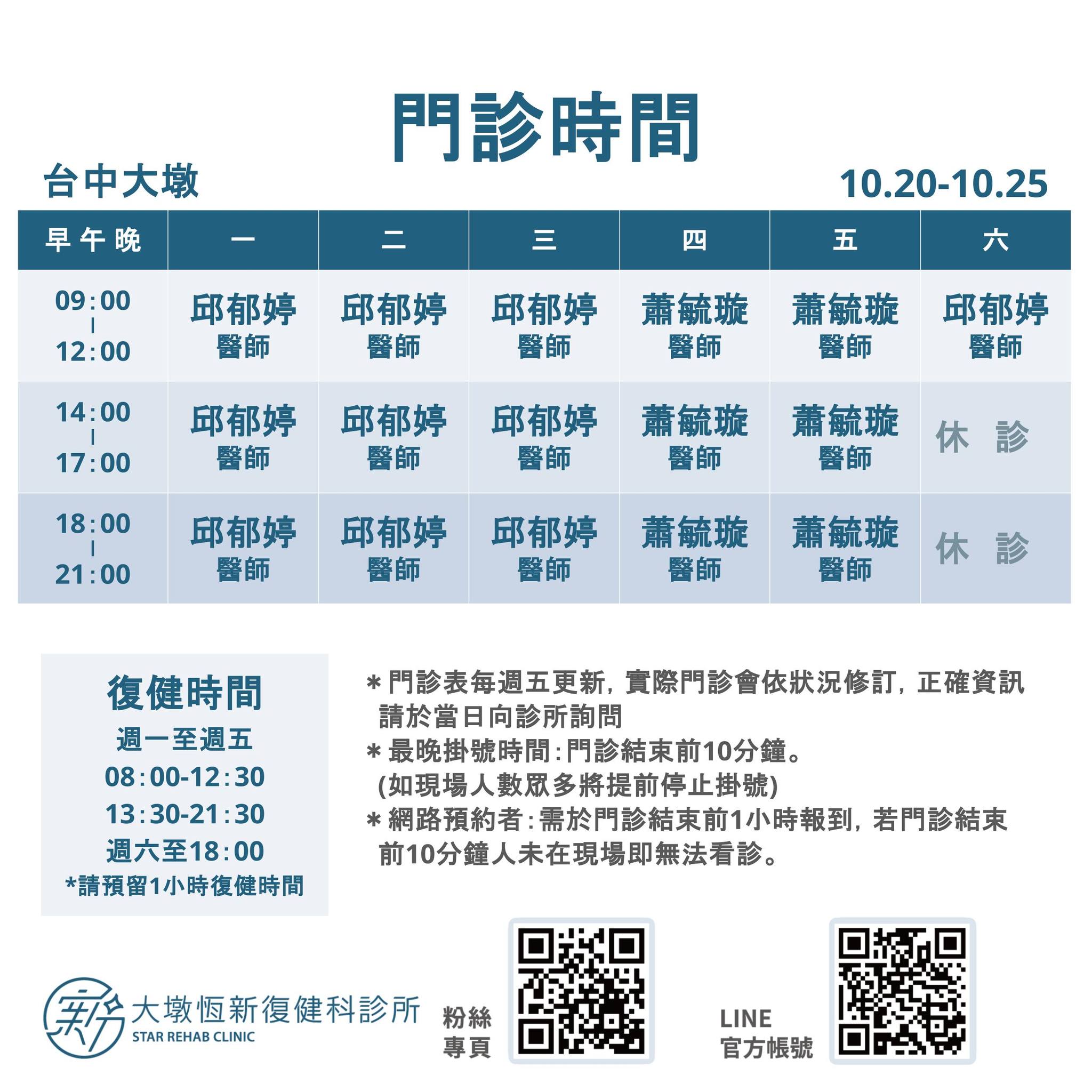 - 週六最晚復健報到時間為17:00(實際門診表會依狀況修訂)