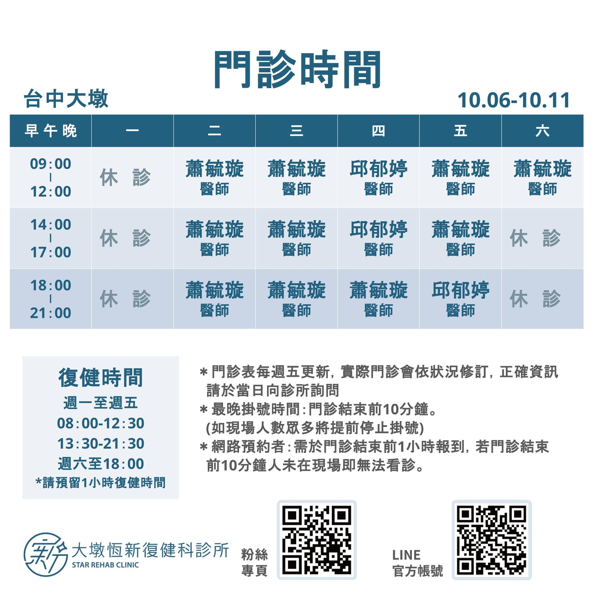 - 週六最晚復健報到時間為17:00(實際門診表會依狀況修訂)