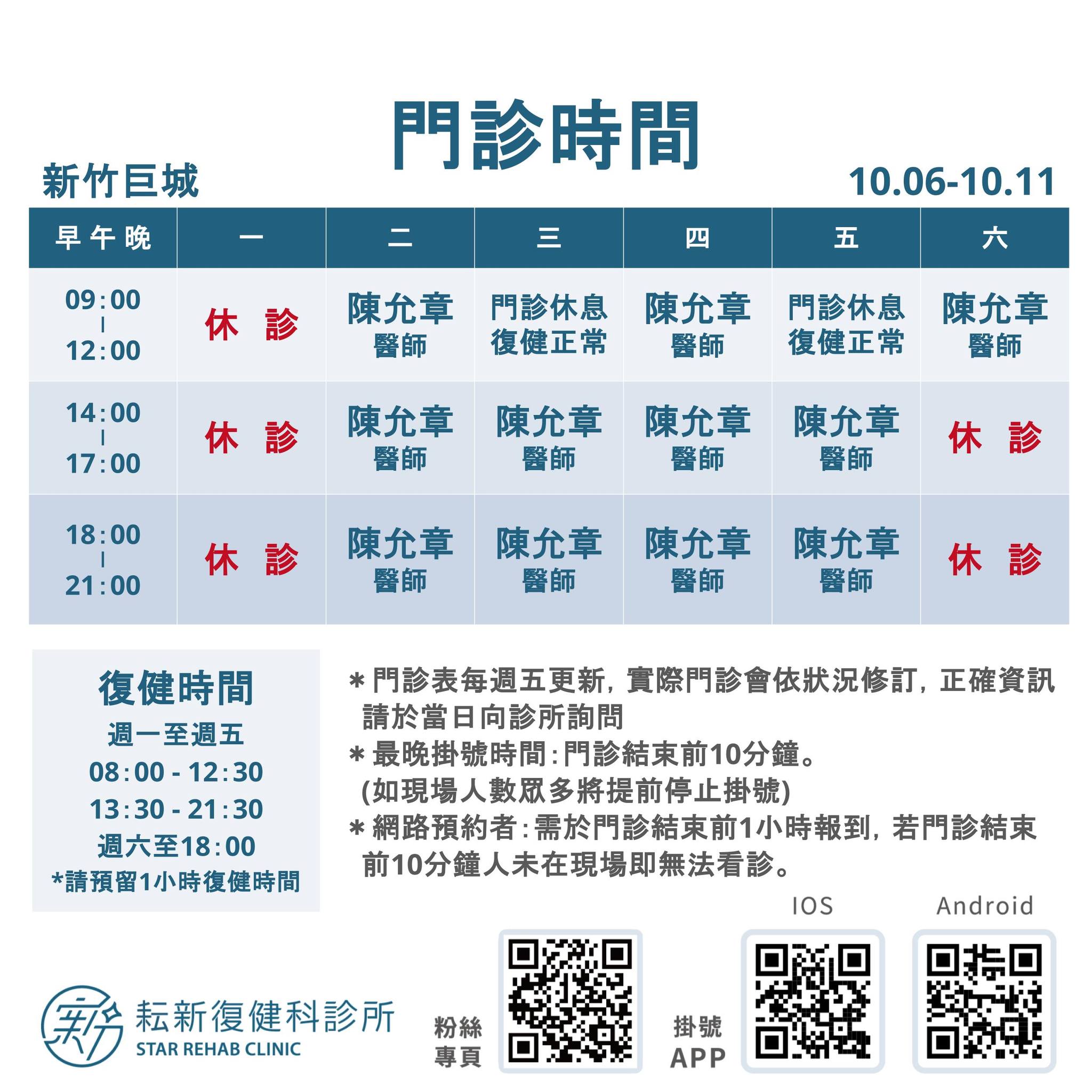 - 週六最晚復健報到時間為17:00(實際門診表會依狀況修訂)