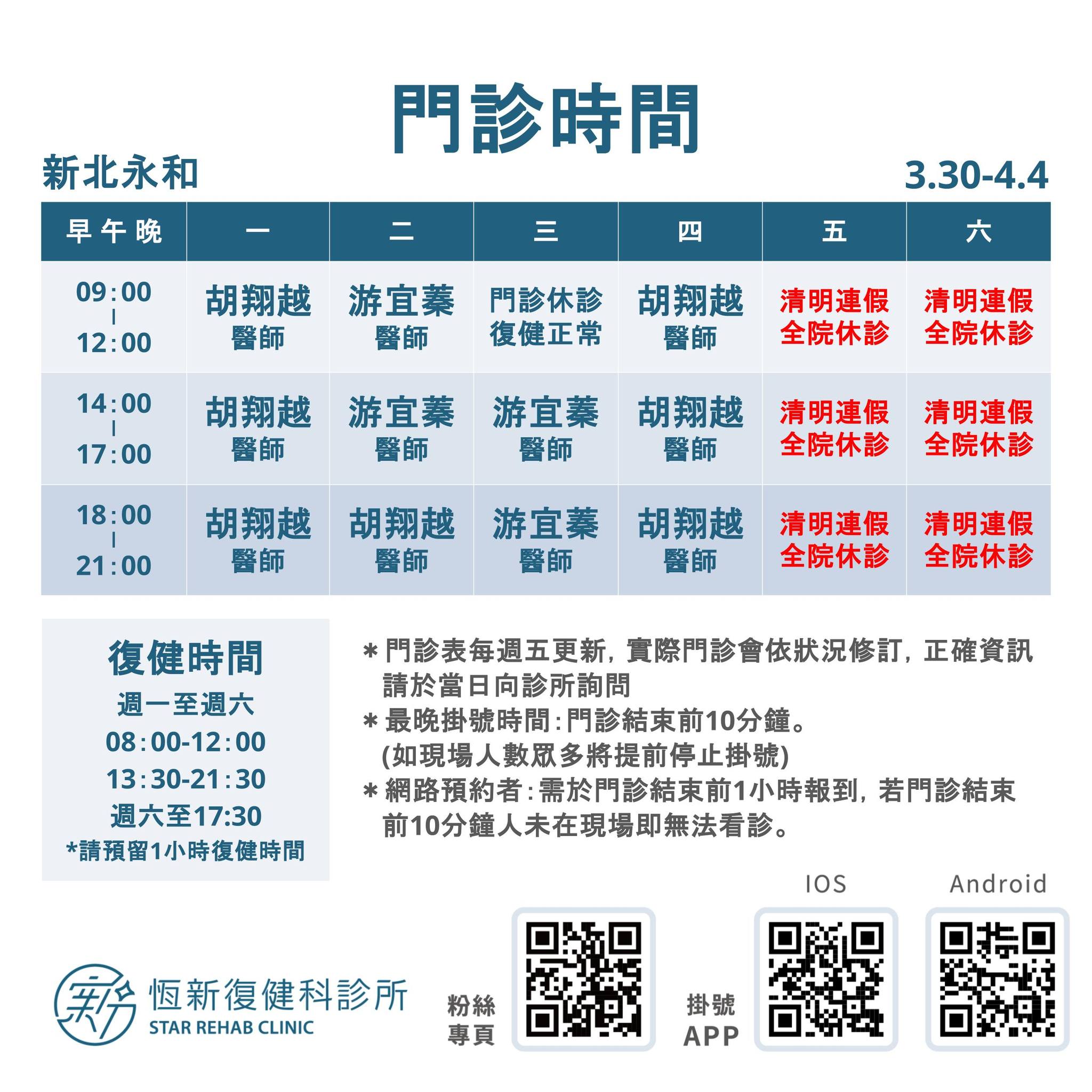 實際門診表會依狀況修訂,正確資訊請於當日向診所查詢。