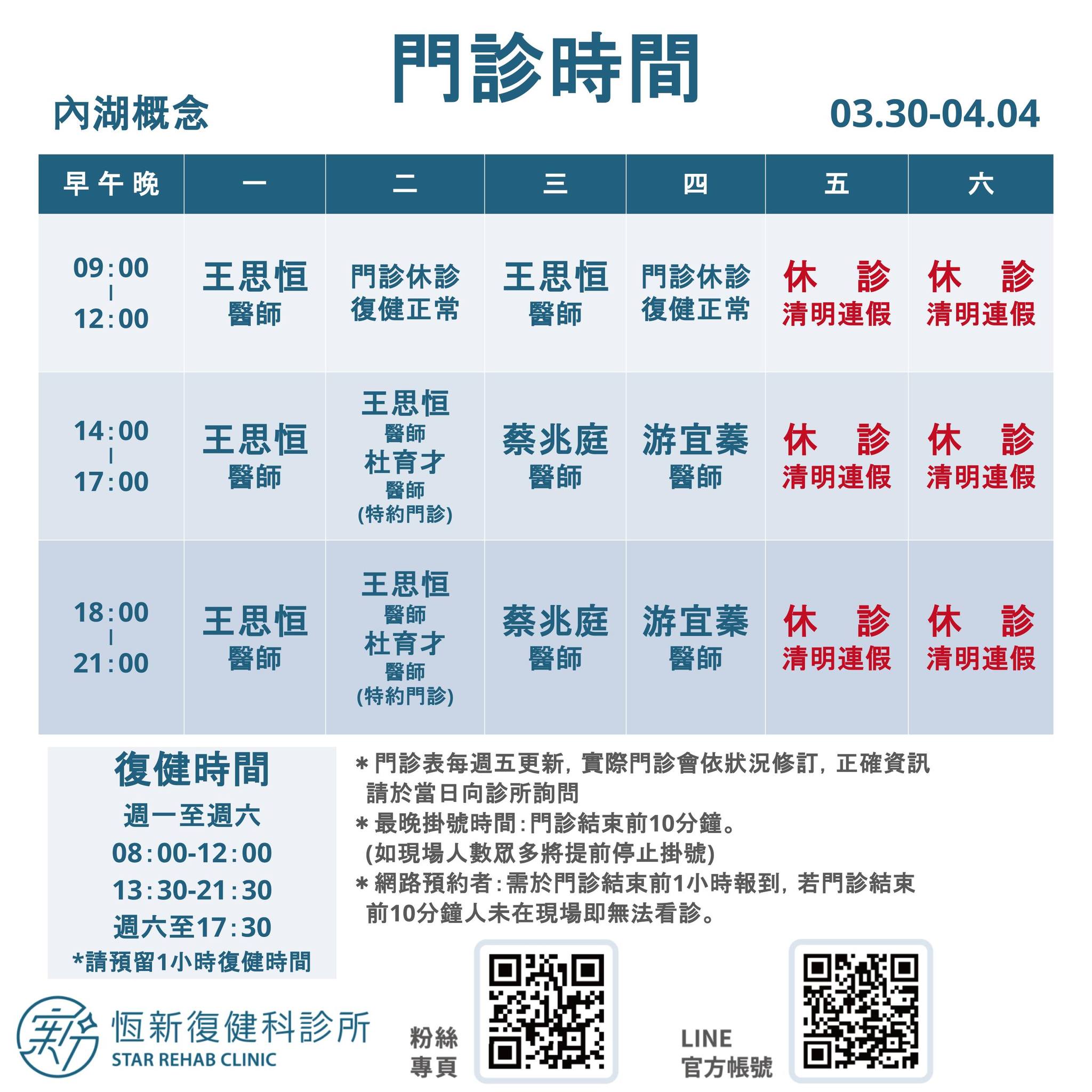 03/30-04/03 門診時間