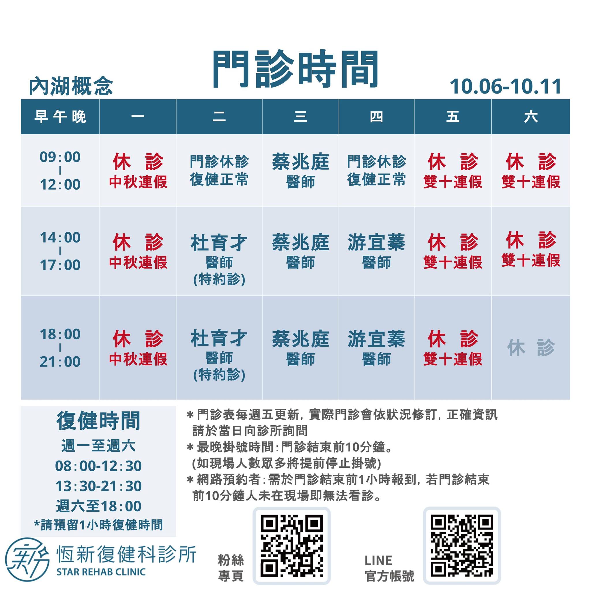 - 門診表每週(五)更新,實際門診表會依狀況修訂;正確資訊請於當日向診所查詢