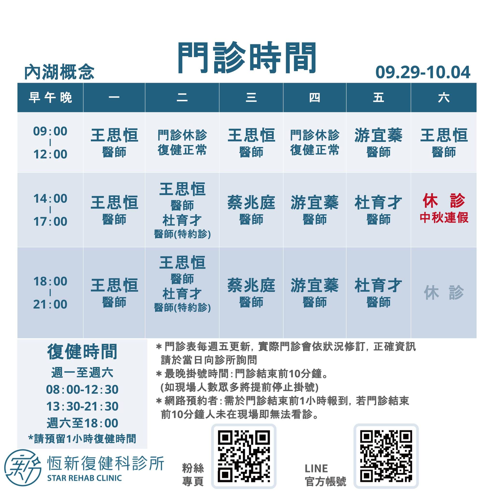 09/29-10/04 門診時間