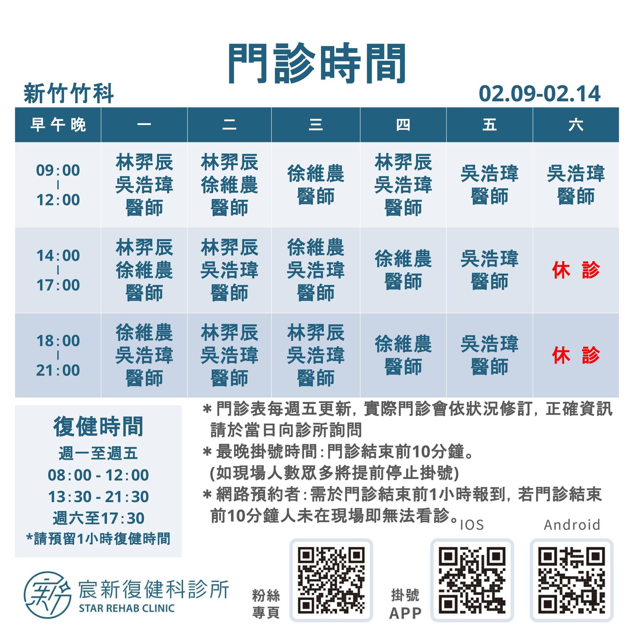 02/09-02/14 門診時間