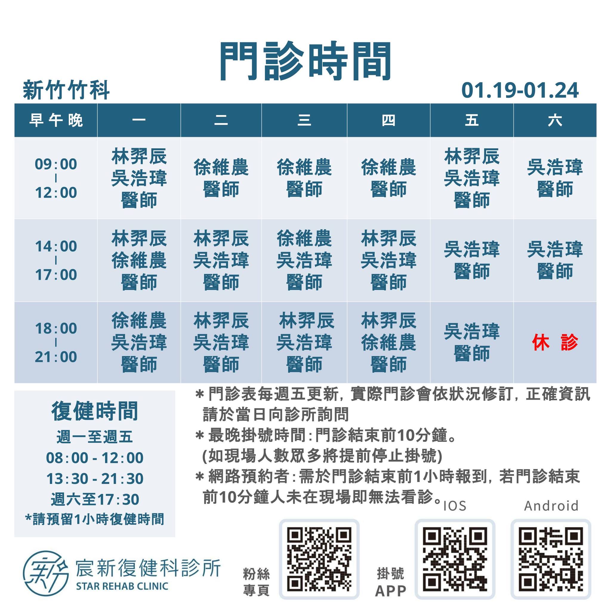 01/19-01/24 門診時間