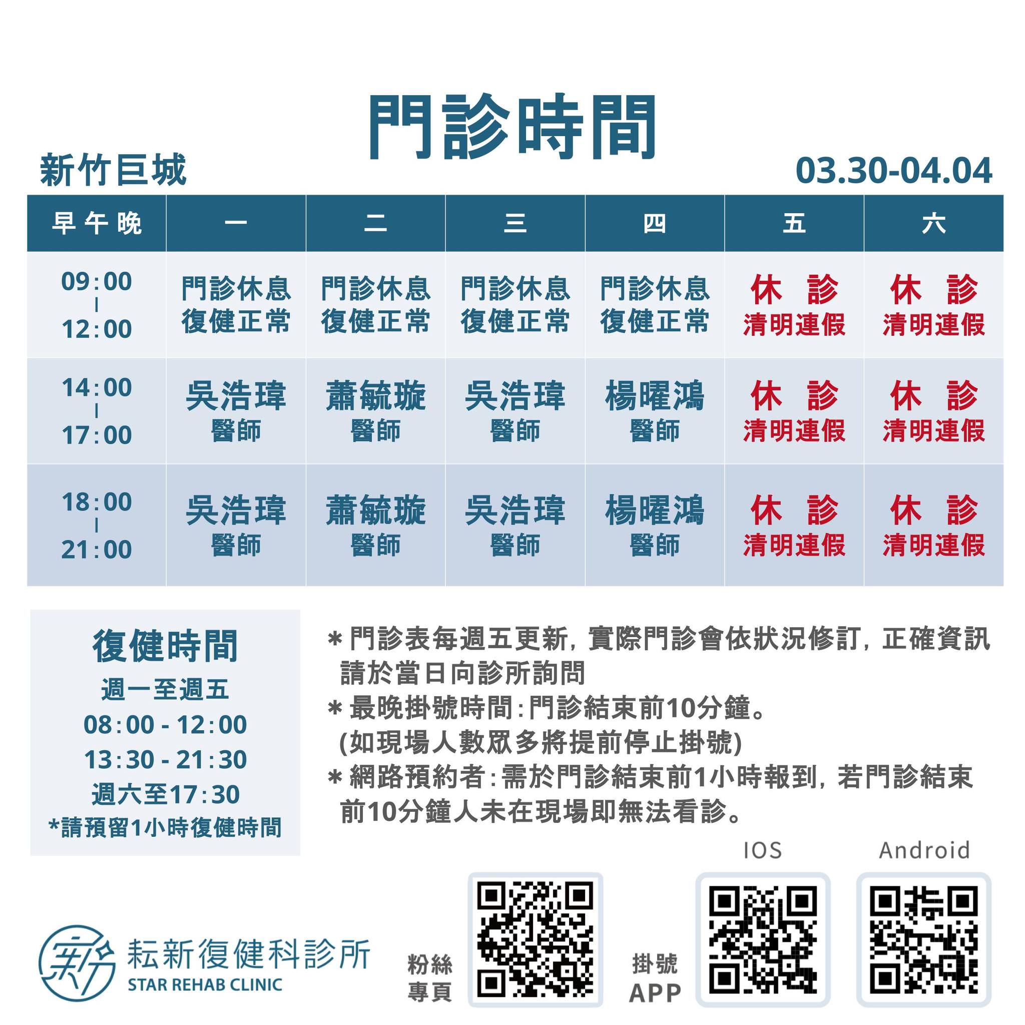 03/30-04/03 門診時間