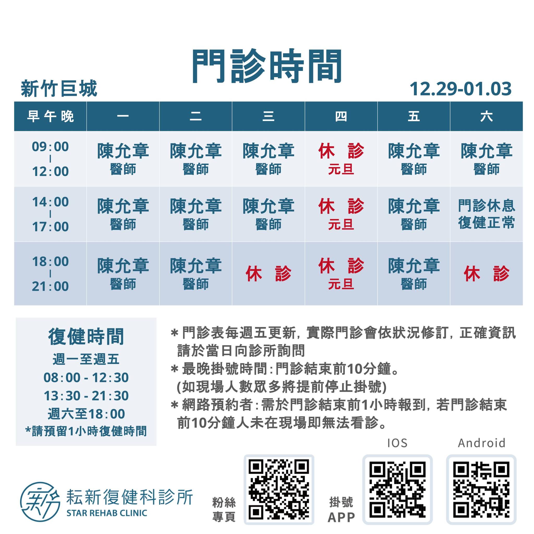 12/29-01/03 門診時間